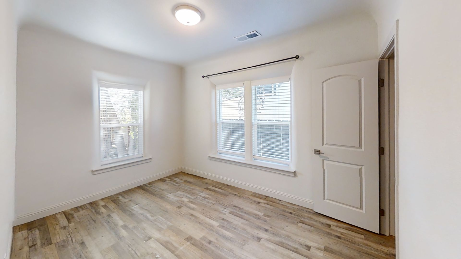 Bright and open living room with laminate flooring throughout